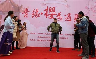 ??? 本網訊?? 2月10日,“青緣·櫻為遇見你”大型青年交友聯誼活動在邵武市大竹鎮省級現代農業示范園舉辦。來自各機關、事業單位和企業的120余名青年,歡聚一堂,開啟櫻花園里的浪漫之旅。活動由市旅游局、團市委、大竹鎮政府和中國人壽保險邵武支公司主辦,旨在為單身青年搭建起一個情感交流、自我展示的平臺。