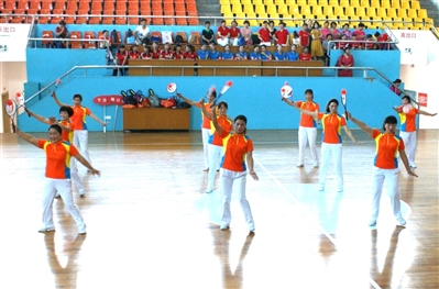 ?本網(wǎng)訊?? 6月15日,由市文體廣新局主辦、市老體協(xié)承辦的2018年全民健身運動柔力球展示大會在市體育館舉行,來自全市各鄉(xiāng)鎮(zhèn)、街道的14個代表隊參加。最終,市供電公司、拿口鎮(zhèn)代表隊分獲A組、B組優(yōu)勝獎,水北辦事處、和平鎮(zhèn)代表隊并列獲得C組優(yōu)勝獎。圖為比賽現(xiàn)場。(孔祥明)