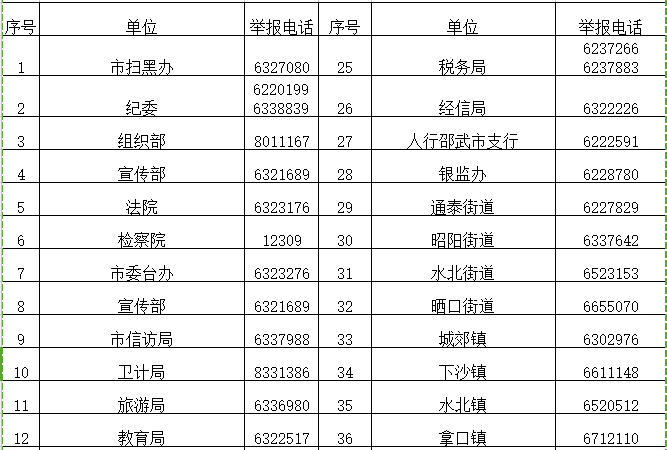 邵武市掃黑除惡各成員單位舉報(bào)電話