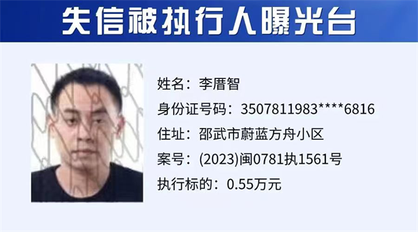 為依法嚴厲打擊規避執行、抗拒執行等違法犯罪行為,推進誠信社會建設,根據《中華人民共和國民事訴訟法》、《最高人民法院關于公布失信被執行人名單信息的若干規定》,現曝光一批被邵武市人民法院將納入失信被執行人名單的個人,望相關被執行人主動履行義務,自覺維護社會信用,也請社會各界廣泛關注并積極提供線索,督促其及時履行義務,對拒不執行或抗拒執行的人員,邵武市人民法院將依法追究刑事責任。