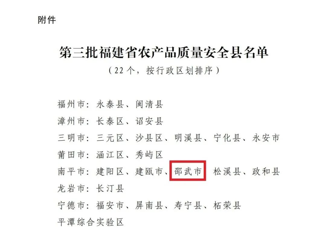 喜報!邵武市被命名為省級農(nóng)產(chǎn)品質(zhì)量安全縣