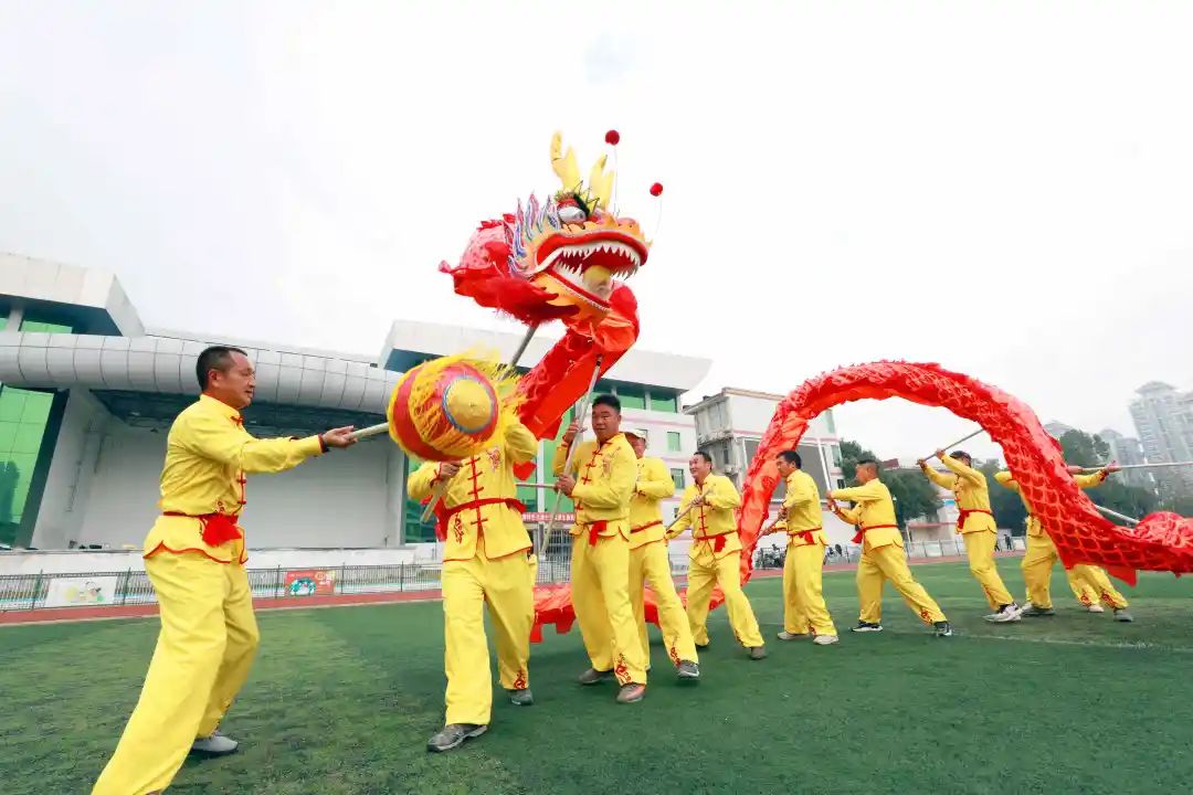 每年正月十五元宵節這一天,祝嶺村各小組的龍隊長都會組織小組的舞龍隊到村所在地進行舞龍比賽,既是比賽也是龍的傳承,也才有了熱鬧的元宵。祝嶺村有各色各樣的龍,如板凳龍、草龍、竹龍、現代龍。今年祝嶺村選取了優秀的舞龍隊員,組成現代龍的隊伍,只為在這個龍年為村民呈現一場別開生面的“龍燈鬧喜”表演。10名龍隊員一字排開,一人手持“龍珠”,在龍頭前領舞,意為龍搶寶珠。隨鼓樂伴奏,通過人體的運動和姿勢的變化完成龍的穿、騰、躍、翻、滾、戲等一系列動作,充分展示龍的精、氣、神、韻。