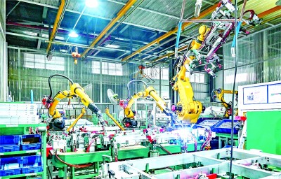 福建福州福享汽車生產車間機械臂飛舞。林雙偉攝/光明圖片