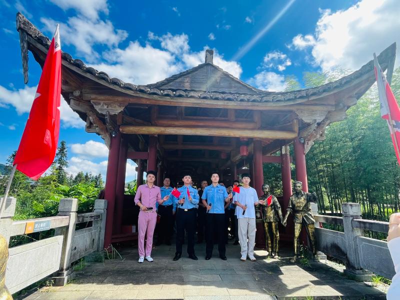 伴隨著激揚的旋律,由10多名退役軍人和20多名的志愿者組織的隊伍,從四面八方涌向金坑黨校校區中央,一時間廣場上紅旗漫卷,歌聲飛揚,現場游客們也熱血沸騰,齊聲高唱出心中炙熱的愛國之情。