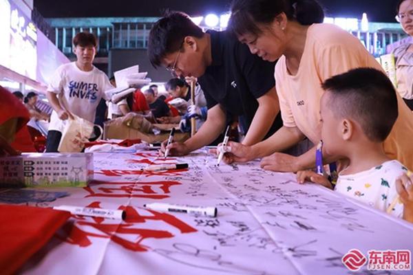 市民在文明旗幟上簽名 東南網記者 肖練冰 攝 |