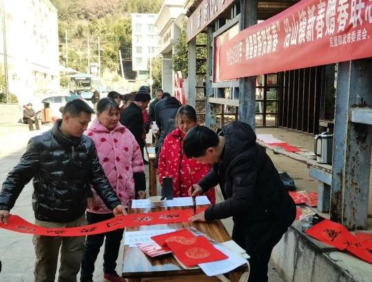活動現場,村民們圍在老師的桌前,挑選喜歡的春聯內容,老師們揮毫潑墨,或現場自由發揮,或應群眾要求“量身定制”,筆走龍蛇間一副副飽含吉祥寓意的春聯躍然紙上。陽光下,墨香與暖陽交織出一幅充滿年味的畫卷。