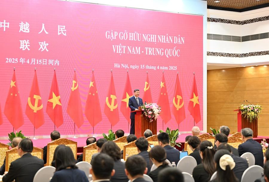??4月15日上午,中共中央總書記、國家主席習近平在河內(nèi)國際會議中心同越共中央總書記蘇林、越南國家主席梁強共同會見中越人民大聯(lián)歡活動代表。這是習近平發(fā)表題為《奏響睦鄰友好主旋律 共譜命運與共新篇章》的致辭。新華社記者 殷博古 攝 習近平強調(diào),中越友好在兩國人民守望相助中生根發(fā)芽,兩國人民在爭取國家獨立和民族解放的正義事業(yè)中并肩戰(zhàn)斗,給“同志加兄弟”的深厚情誼印染了鮮紅底色。中越友好在兩國人民團結(jié)協(xié)作中開花結(jié)果,雙方錨定“六個更”總體目標,堅定支持彼此走符合本國國情的社會主義道路,不斷取得社會主義建設(shè)事業(yè)新成就。中越友好在兩國人民共同追求中傳承升華,雙方積極踐行全球發(fā)展倡議、全球安全倡議、全球文明倡議,堅定捍衛(wèi)國際公平正義,始終堅定站在歷史正確一邊、時代進步一邊,為亞洲和世界提供了更多正能量。 習近平指出,人民是歷史的創(chuàng)造者,兩國人民的擁護和支持是構(gòu)建中越命運共同體的堅實基礎(chǔ)。青年是事業(yè)的未來和希望。中方將在今后3年邀請越南青年赴華開展“紅色研學之旅”,沿著兩黨兩國老一輩領(lǐng)導人的革命足跡,探尋中越友好的紅色基因,感受中國式現(xiàn)代化的萬千氣象,為兩國各自社會主義事業(yè)和構(gòu)建具有戰(zhàn)略意義的中越命運共同體凝聚青春力量。 蘇林表示,在習近平總書記、國家主席對越南進行歷史性訪問、兩國共同慶祝建交75周年和人文交流年之際,舉行中越人民大聯(lián)歡具有重要意義。友好合作一直是越中關(guān)系的主流,中國黨、政府和人民在越南民族獨立、國家統(tǒng)一和建設(shè)進程中給予了無私幫助,越方始終銘記。構(gòu)建具有戰(zhàn)略意義的命運共同體引領(lǐng)越中關(guān)系進入新階段,也將為人類發(fā)展和進步作出重要貢獻。青年是傳承和發(fā)展兩國傳統(tǒng)友好的希望。越中青年要肩負起歷史使命,讓兩國一代代領(lǐng)導人親自締造和培育的傳統(tǒng)友好代代相傳;要開展好越南青年赴華“紅色研學之旅”活動,深化兩國“同志加兄弟”友好情誼;要開拓創(chuàng)新、團結(jié)協(xié)作、共謀發(fā)展,為兩國實現(xiàn)現(xiàn)代化發(fā)揮主力軍作用。