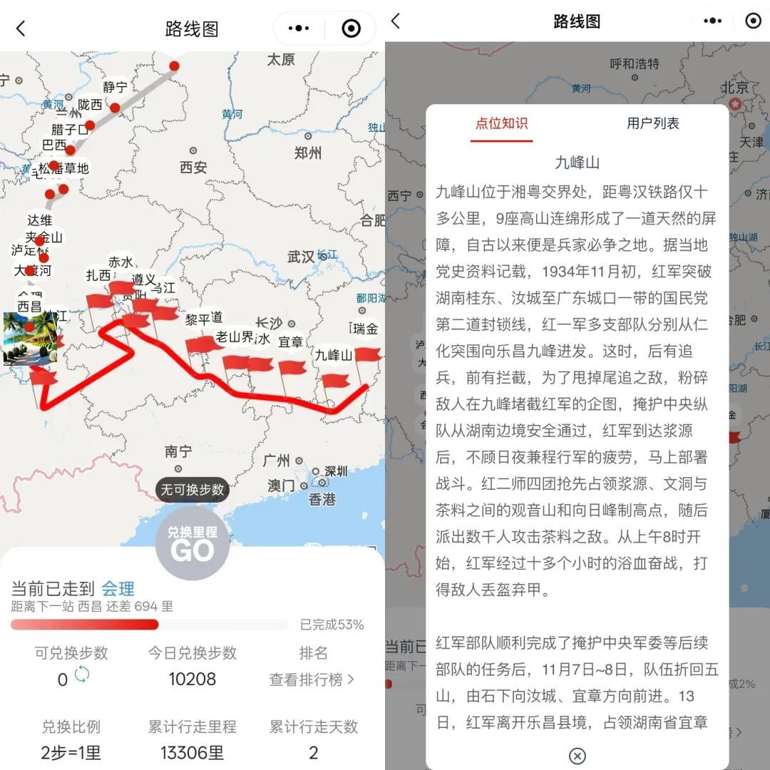 活動中,黨員們通過“重走長征路,步數換里程”小程序,沿著精心規劃的模擬長征路線徒步前行,途中可了解對應長征地點的歷史介紹、圖片及故事,如突破烏江、遵義會議舊址、飛奪瀘定橋等,重溫黨的光輝歷程,深刻感受長征歷史,緬懷黨的豐功偉績,傳承和弘揚長征精神,增強黨員的歷史使命感與責任感。